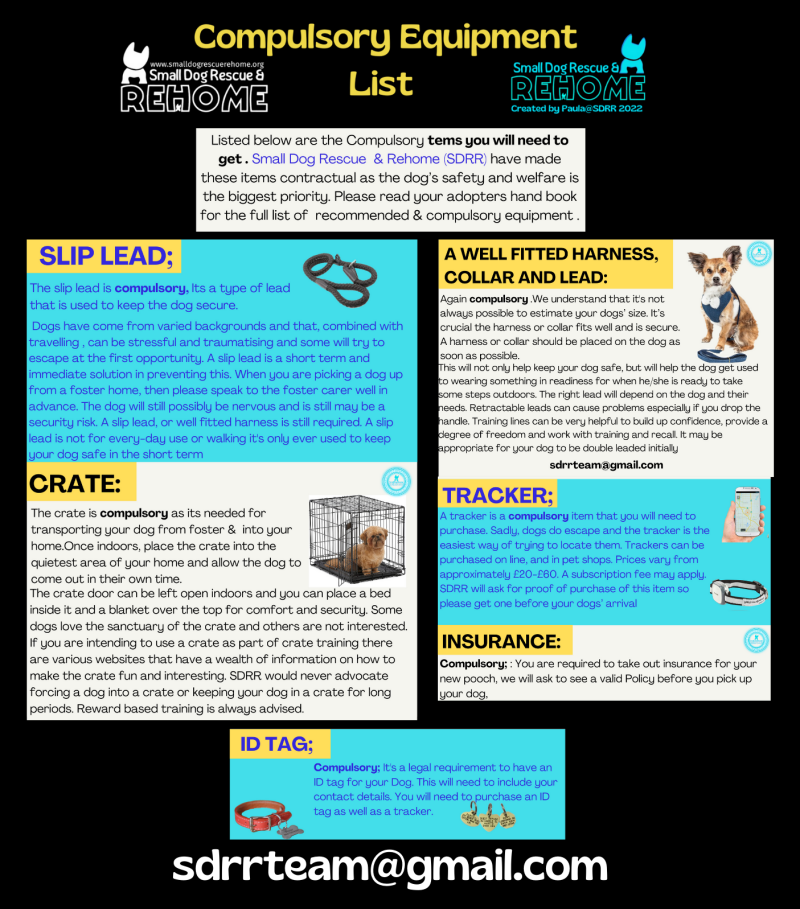 All SDRR dogs unless because of a medical condition must wear a Slip lead on COLLECTION this will be a condition of adoption otherwise adoption will not take place. A harness is used in ADDITION to the Slip lead but not instead of.